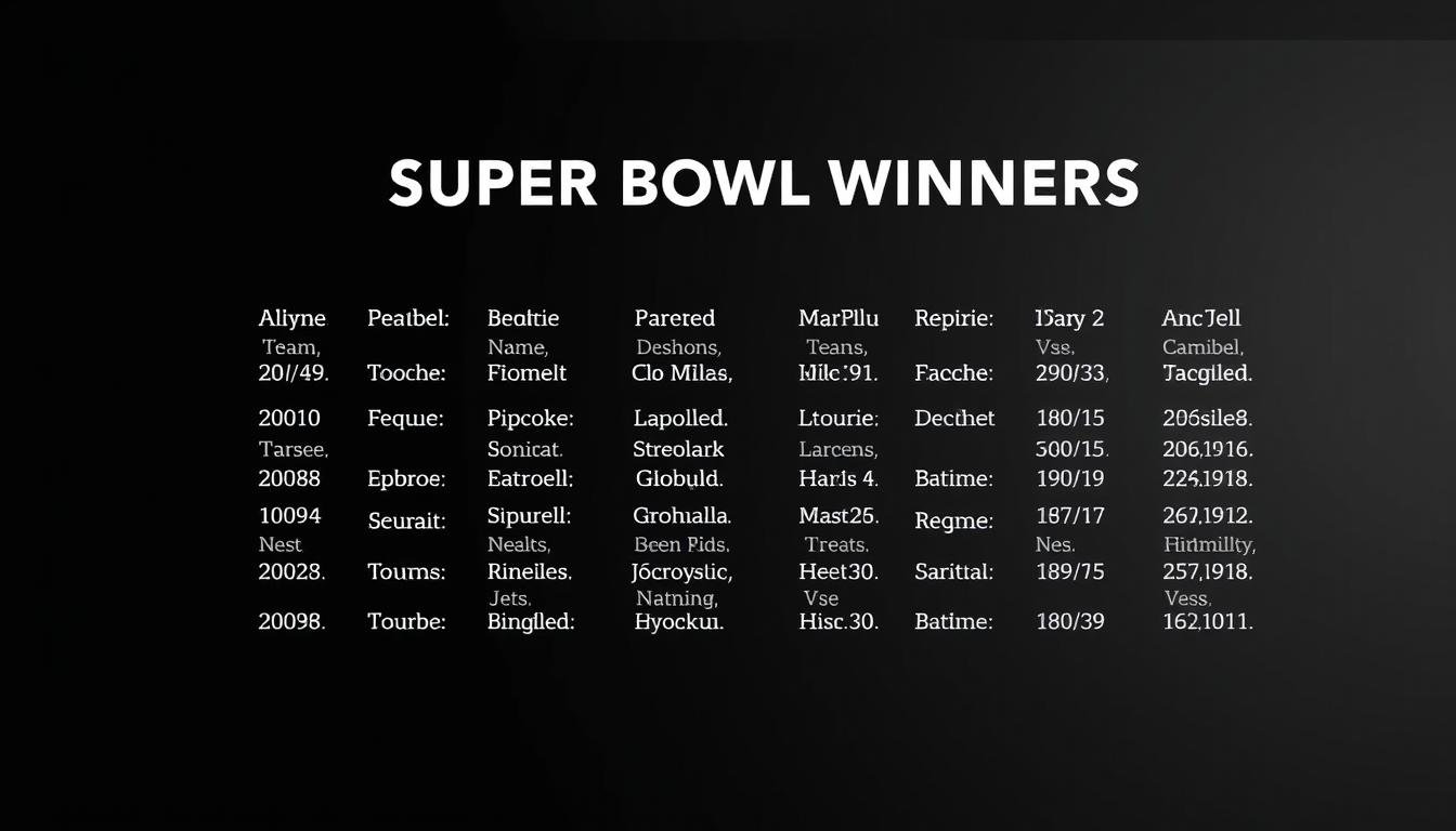 The last 10 Super Bowl winners show the NFL’s competitive nature. Several teams have experienced championship success. The most recent super bowl winners have shown that consistency and strong team performance are key to victory in the biggest game of the year.